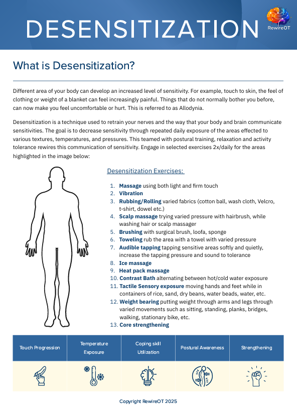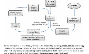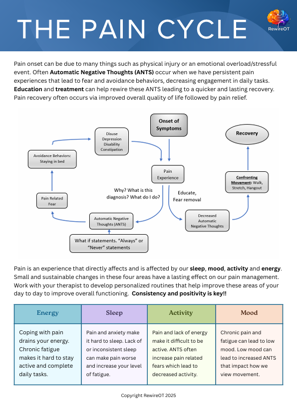 Chronic pain treatment often requires a well balance approach to make lasting and meaningful progress. This treatment may include medication, physical intervention (Occupational Therapy or Physical Therapy), psychological support and lifestyle change that can include routine, exercise, activity pacing and more.