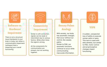 Sensory system changes- This is the way our environment influences how we function each day. Often those with FND are more sensitive to environmental changes around them.